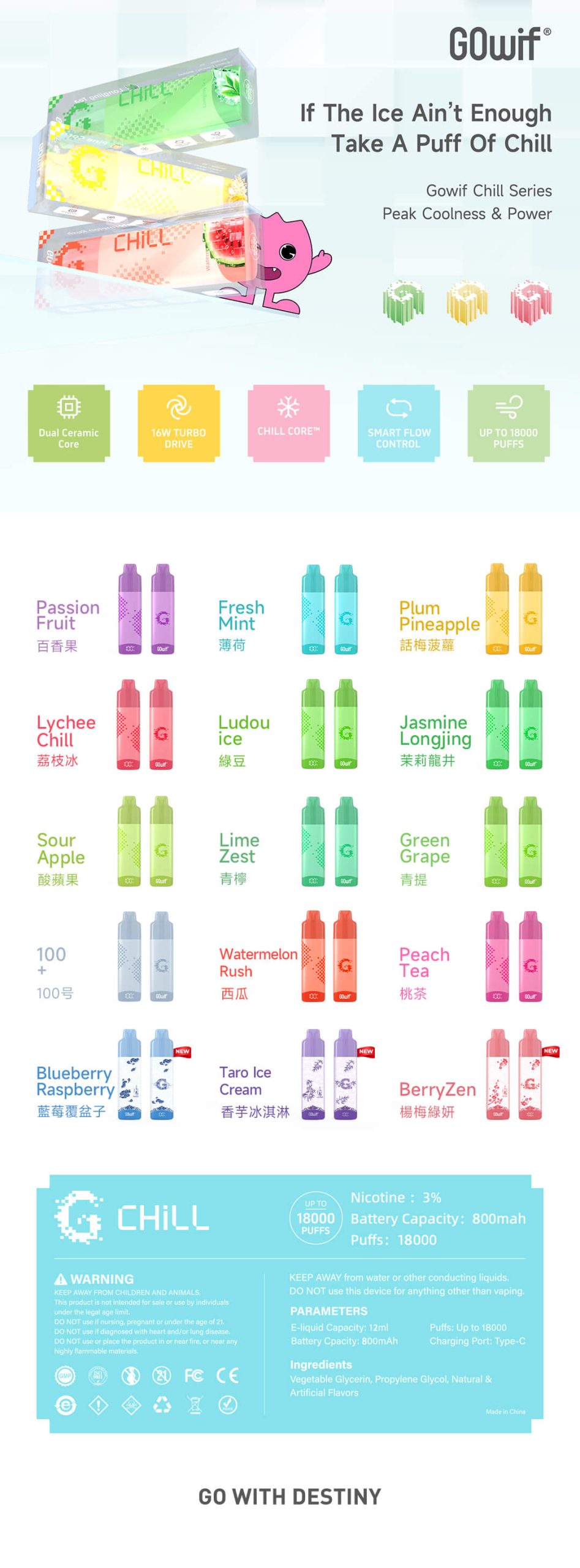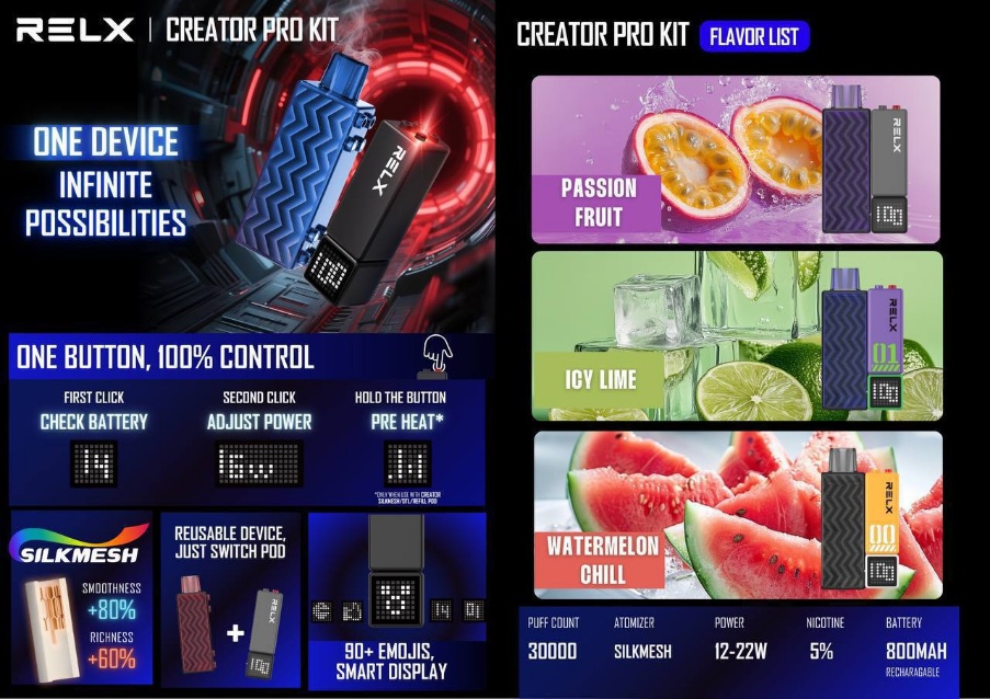 官方宣传18000口,实际注油12毫升,底部带显示屏,有油电显示。口数3000口左右。原厂带防伪码,注意甄别真假。口感清凉且甜度不高,18瓦大功率,烟雾够大,且支持快充。双陶瓷结构,金属机身。几乎0漏油。非常推荐。