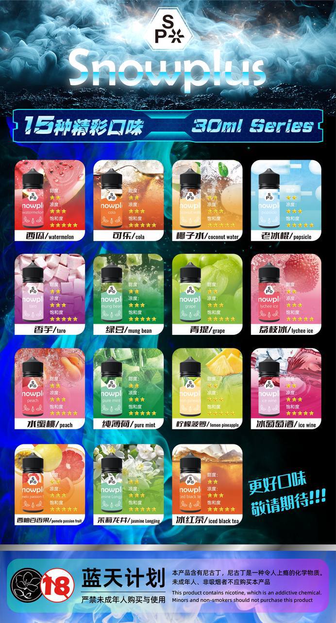 雪加大板砖同一个公司出品,只是品牌不同。带屏幕,透明油仓,有油电显示。所有口味都是高冰低甜,适合国人口味。宣称10毫升12000口,实际注油10毫升2500口左右。性价比比较高,质量稳定,非常推荐。